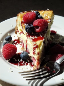 White Chocolate with Raspberry Sauce.