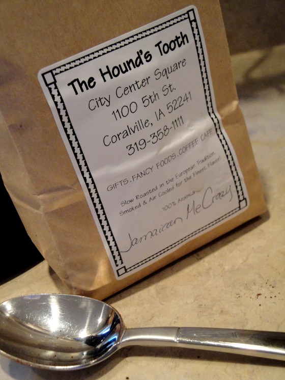 Next up, some special coffee from the Hound’s Tooth, an adorable gift shop in Coralville.  Jamaican Me Crazy, recommended by my friend Jeremy, was great!  The aroma was awesome!  Even I (not much of a coffee drinker) had to have a cup or 2.