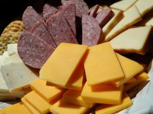 Later that afternoon, we welcomed some more friends over to the house to relax by pool, catch up since our last visit, and enjoy dinner together. While I prepped the rest of the meal, we started with a simple plate of cheese, sausage, and crackers. Does it get any easier or better than this?! (Good quality cheese is the key!) I filled the plate with Extra Sharp Cheddar, Smoked Gouda, and Pepper Jack as well as some Summer Sausage from Pella, IA. Delicious!
