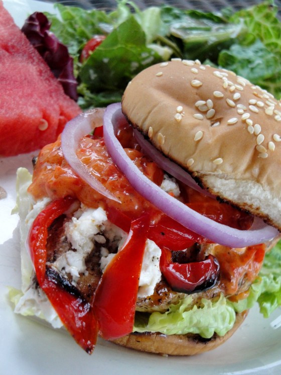 And the main course…..a new favorite at our house!! Roasted Red Pepper Chicken Sandwiches! Truth be told, last week Ryan and I met some of Ryan’s other co-workers out for Happy Hour (yes, I stuck with O’douls) and a quick dinner. On the menu…a Roasted Red Pepper Chicken Sandwich. After ordering it up and LOVING it…I decided, we can totally do this at home! And guess what folks, we did…and we like it even better than the “original”! So….switch up your grilled chicken sandwiches this year….this one is easy and mouth-watering good!